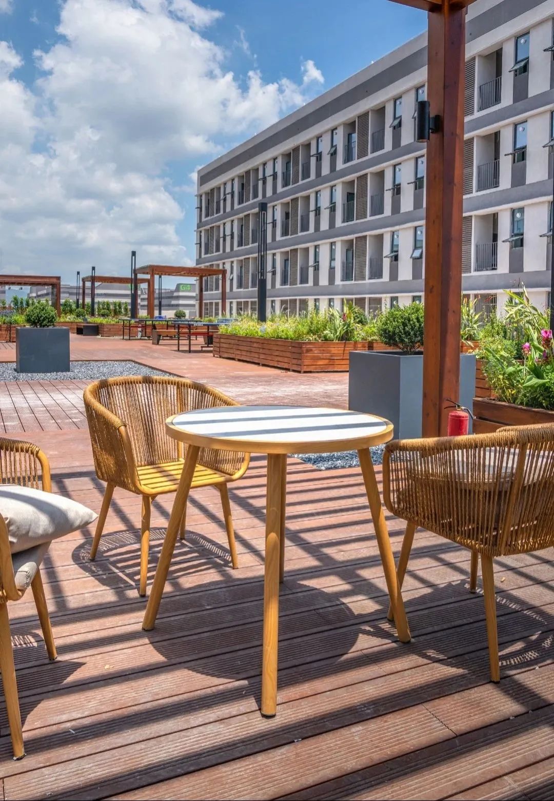 产业工人下班后,可以在这里看落日余晖,也可以举杯对饮。露天大平台,在重要的赛事期间,还可以成为观看与讨论赛事的交流社区。