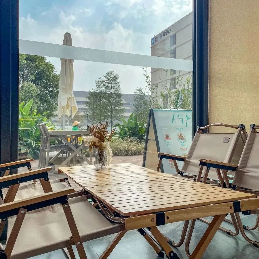 厂区内的滨茶奶茶店将周边打造成一个时尚、休闲的社交空间,创造了一个多样化、充满活力的休闲区域。