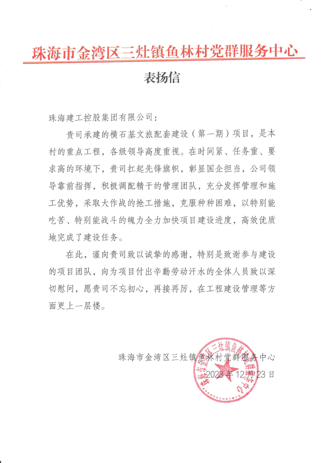 在时间紧、任务重、要求高的环境下,珠海建工集团横石基文旅配套建设(第一期)项目的管理团队自觉扛起先锋旗帜,充分发挥管理和施工优势,采取大作战的抢工措施,克服种种困难,以特别能吃苦、特别能战斗的魄力全力加快项目建设进度,高效优质地完成了建设任务,进一步彰显了国企担当。
