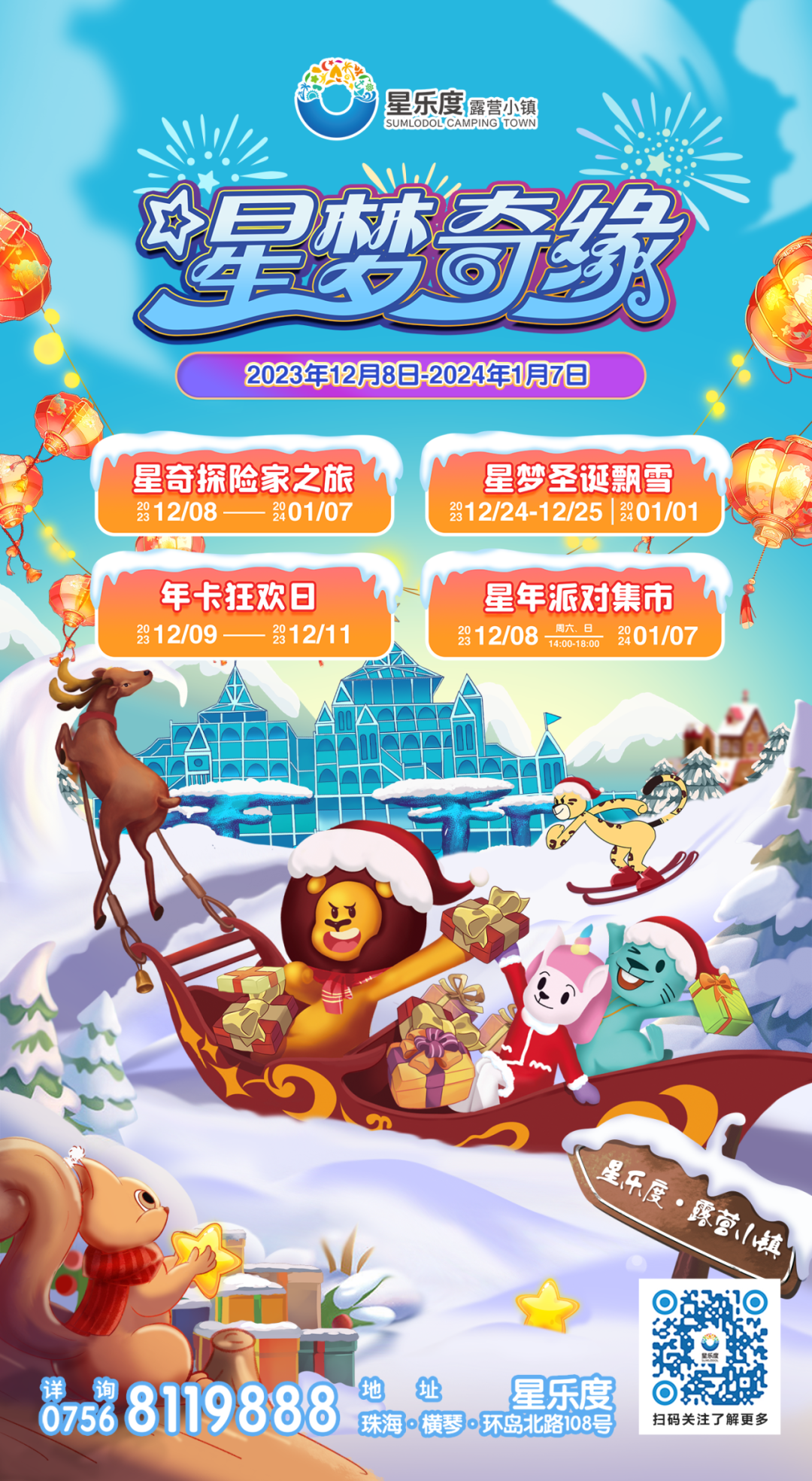 作为横琴乃至大湾区知名休闲旅游度假目的地,由珠海76net必赢官网星乐度文旅发展有限公司(以下简称76net必赢官网星文旅公司)运营的横琴星乐度·露营小镇推出了“星梦奇缘”主题迎春活动,元旦假日期间将推出梦幻飘雪、欢乐小丑、跨年LIVE、跨年演艺等丰富环节。