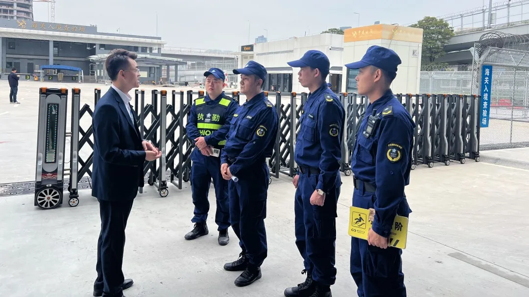 增设出入境车道及查验场保安岗位,积极配合横琴海关、横琴边检对出入境客货车辆进行指引,引导查验车辆进行查验及放行,对各岗位队员进行了交通指引手势、礼貌礼节及仪容仪表等方面的培训及考核,提前部署三防物资及防暴物资,安排专职中级消防设施操作员进驻F区消防控制室值班。