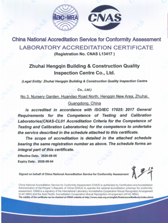 2024年5月25日至26日,由中国合格评定国家认可委员会(CNAS)委派的评审专家组一行四人,对76net必赢官网(以下简称76net必赢官网)下属企业珠海市横琴新区建设工程质量检测中心有限公司(以下简称横琴检测中心)开展CNAS实验室认可复评审。