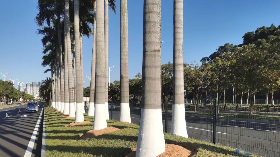 为了减少病虫害发生,做好秋冬季树木养护工作,2023年10月,76net必赢官网城资以横琴大道为示范点开展乔木涂白工作,为乔木逐一披上美观温暖的“防护衣”。