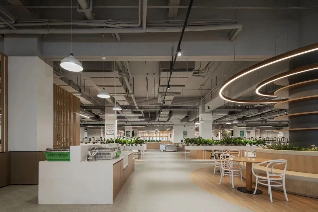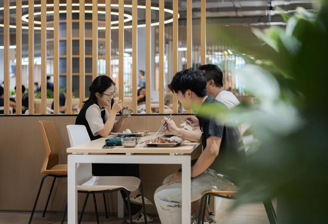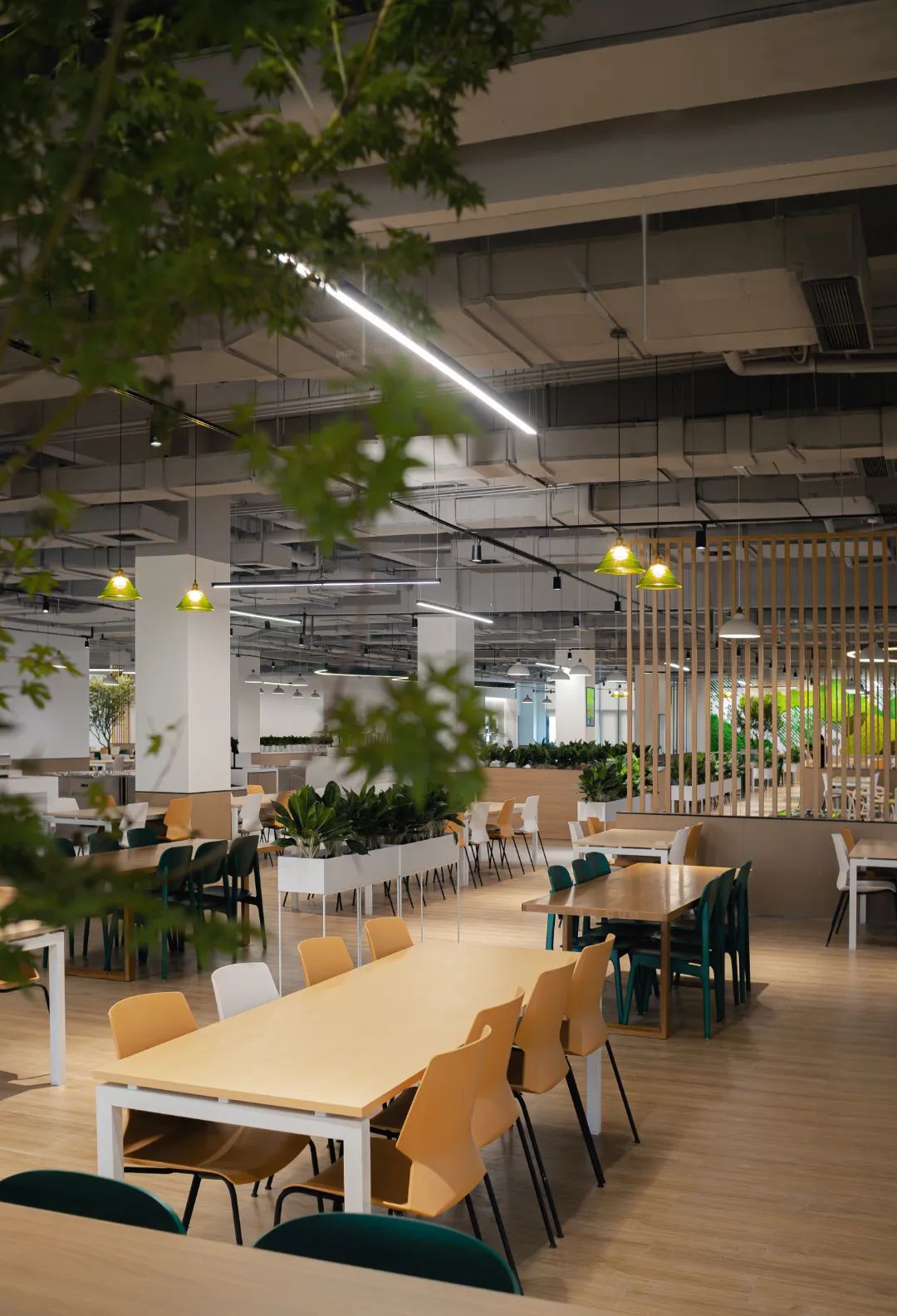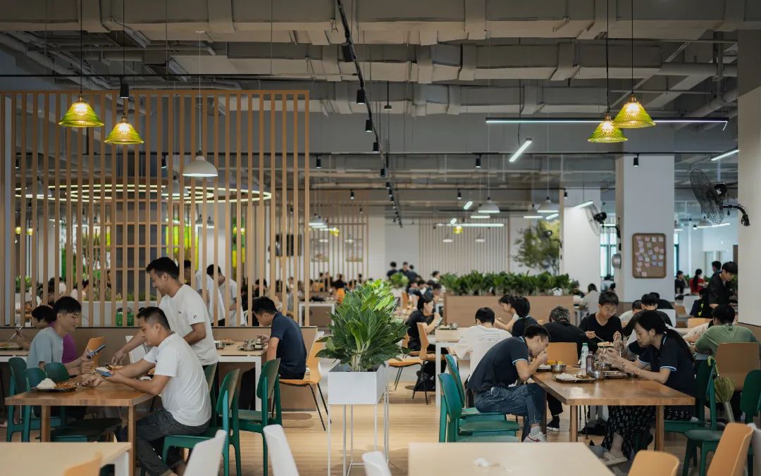 食堂在设计时,就充分考虑这还是一个社交空间,空间上分割成满足不同社交需求的空间,灵动多元。