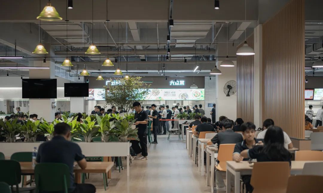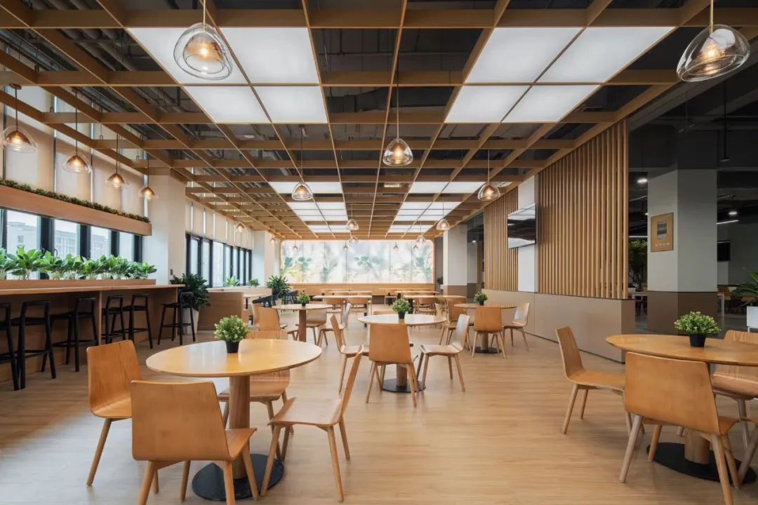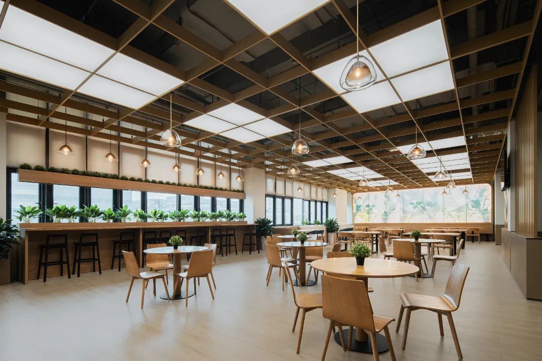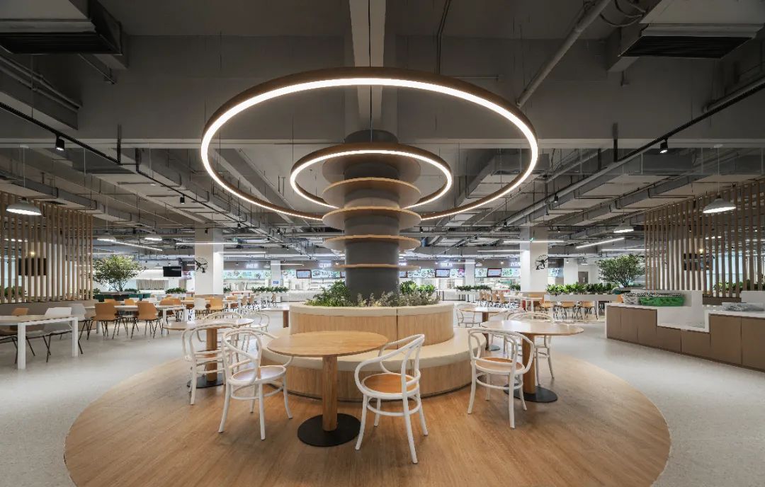 食堂在设计时,就充分考虑这还是一个社交空间,空间上分割成满足不同社交需求的空间,灵动多元。