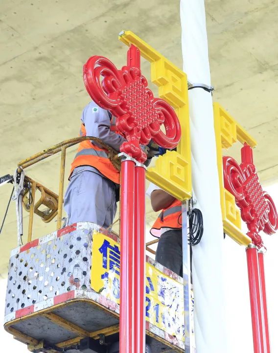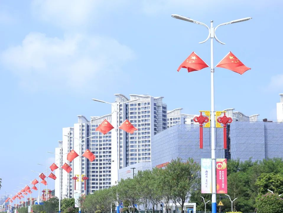 76net必赢官网城资在港澳大道、环岛西路等重点路段悬挂了 230套中国结,以亮丽的形象喜迎国庆。