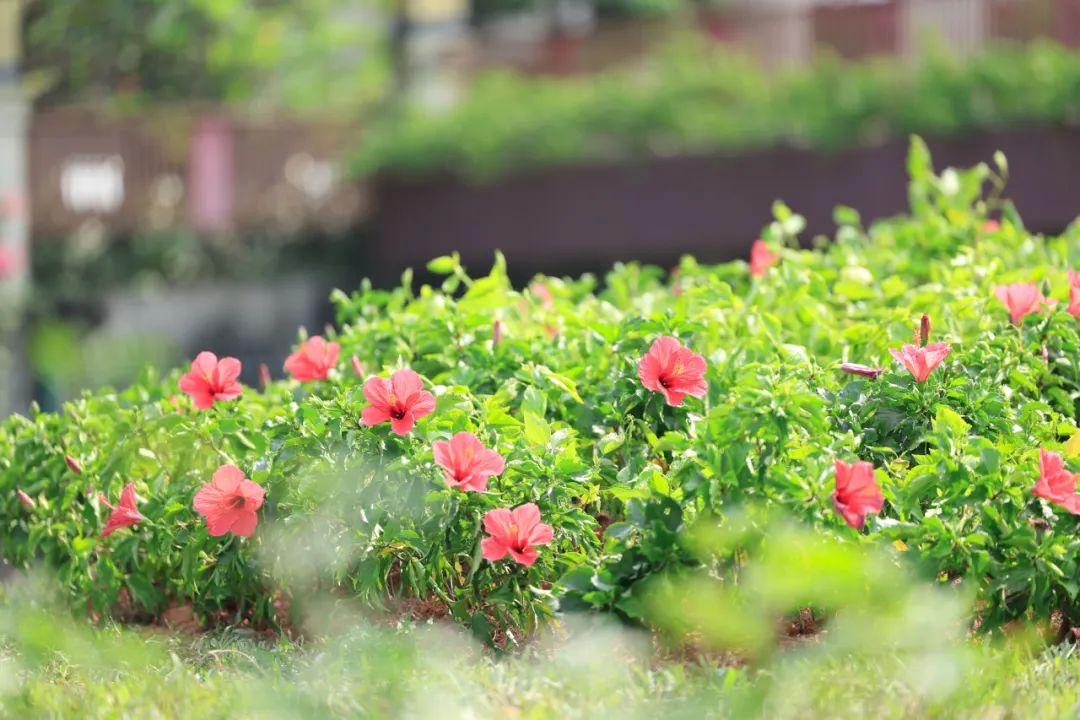 种植勒杜鹃遮挡电箱,种植红绒球遮挡水阀门与井盖,利用仿真植物遮挡现有管道,确保设施外观与周边环境和谐统一。