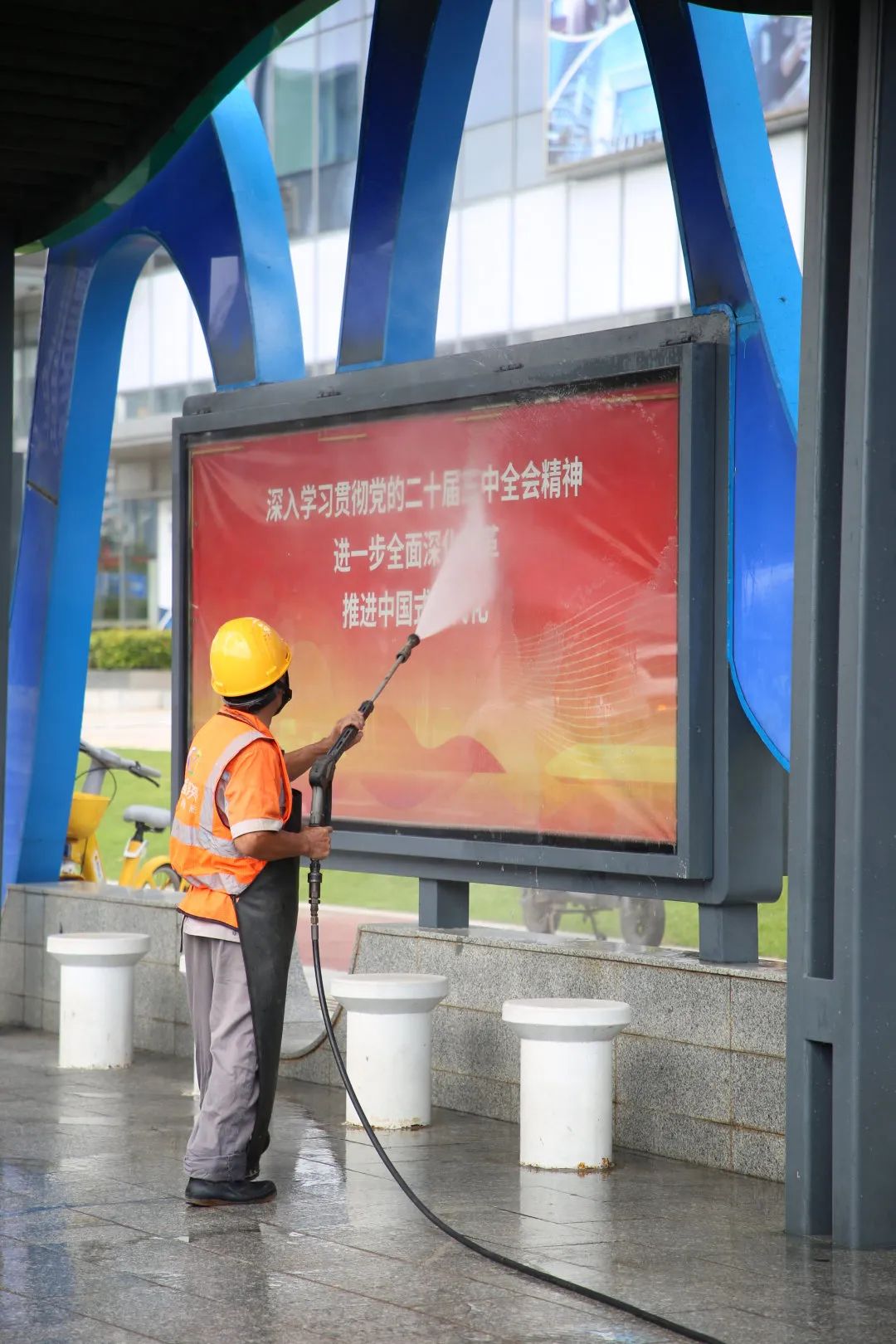 对管养范围内的公交站进行了全面清洗,为候车的居民和旅客营造舒适干净的候车环境,让出行更加舒心。