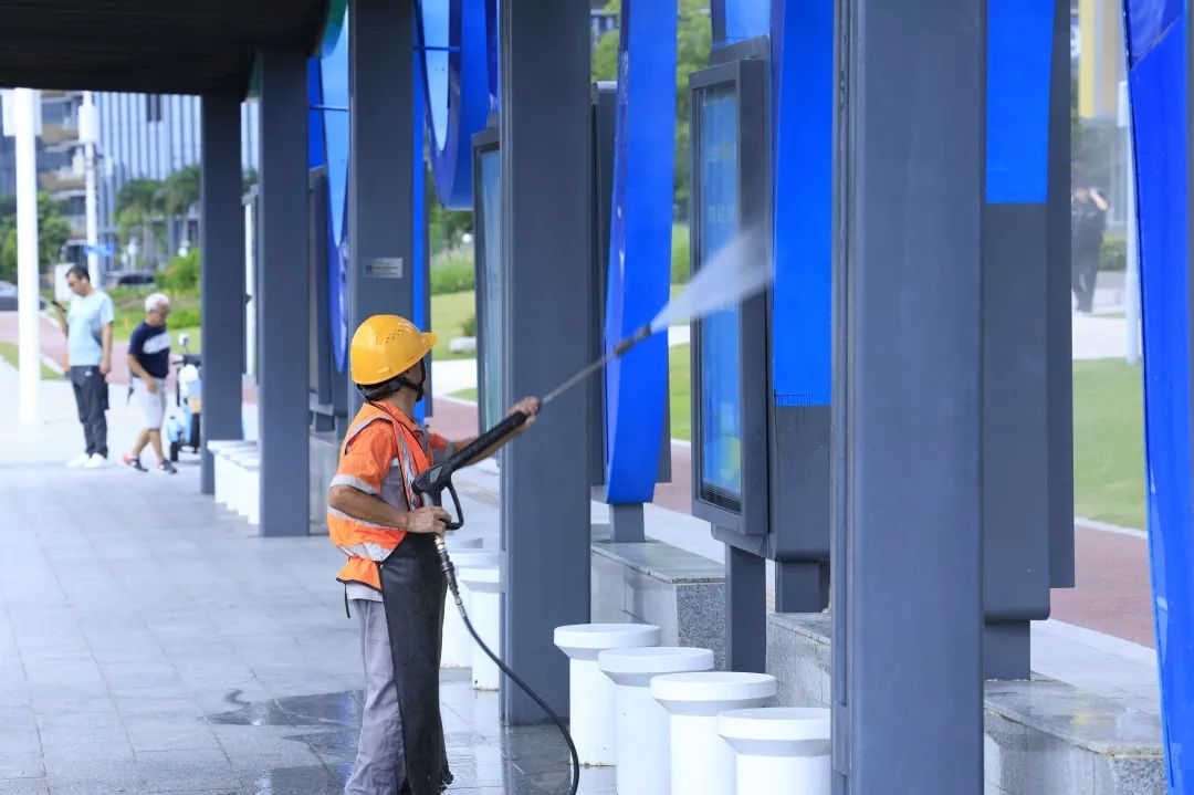 对横琴码头周边管养范围内的人行道及沿线市政设施进行细致的清洗,进一步提升环境整洁度,为居民和游客带来更加舒适宜人的居住和游玩体验。