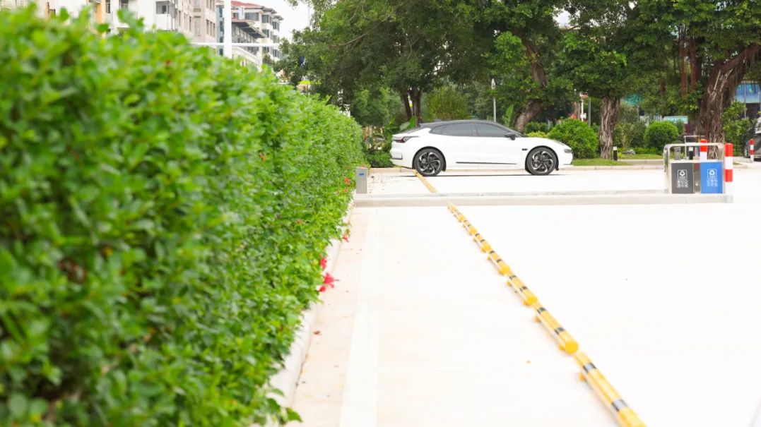 银鑫花园北侧,环岛东路与祥澳路的交汇路口,一处崭新的停车场映入眼帘,现场工人们正在安装智能停车管理设备和保安亭。新规划的停车位像豆腐块一样,排列有序、整齐划一,绿植环绕整个停车场并延伸到场外500平方米的街角绿地,格外清爽。