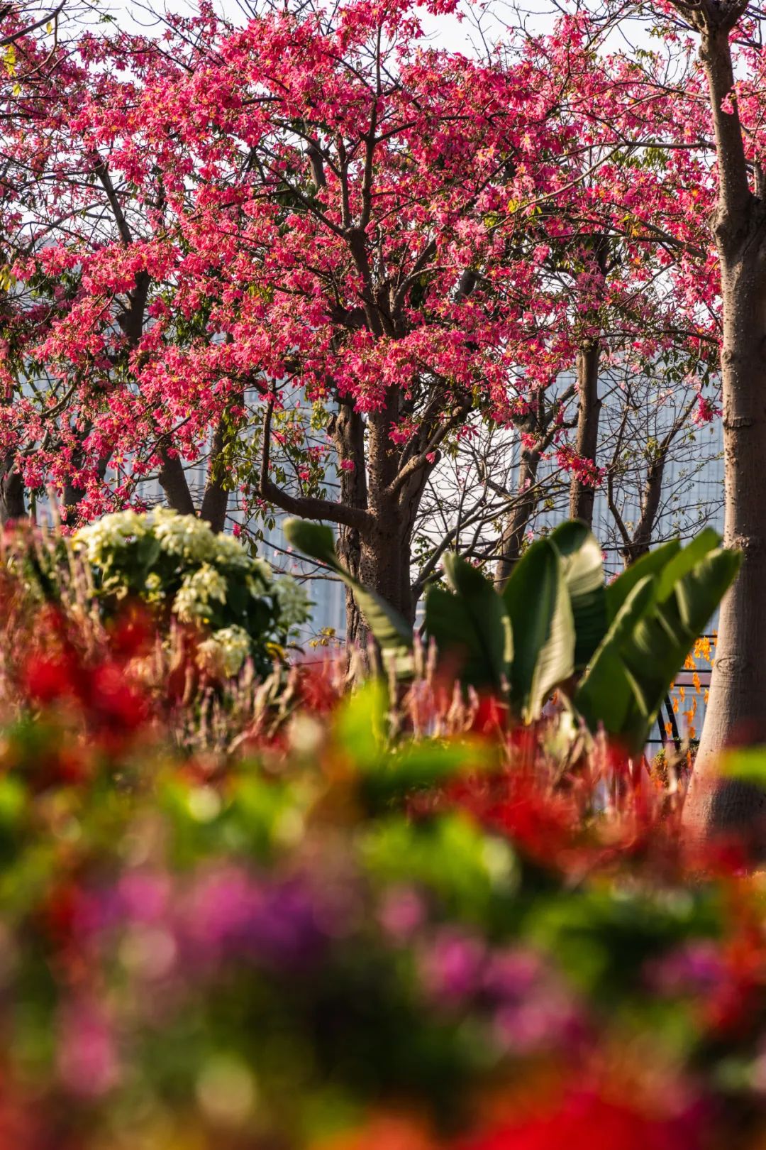 花期来临前,大湾区一带经历了较长的雨季,琴建公司及时采取应急措施,科学调整养护方法,充分利用雨水对花苗的滋养,为花海的盛开奠定了基础。最终,盛放的美丽异木棉连绵不绝,乃是花海长廊对琴澳居民最好的馈赠。
