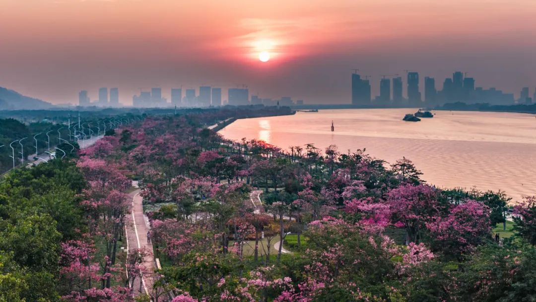 每年立冬前后,告别春夏雨季的横琴花海长廊便迎来了她一年之中最美丽的季节——美丽异木棉盛花期。绚烂的粉色花海以饱满、茂盛、茁壮的姿态展现在市民游客们面前,海岸四处洋溢着浪漫与温馨。