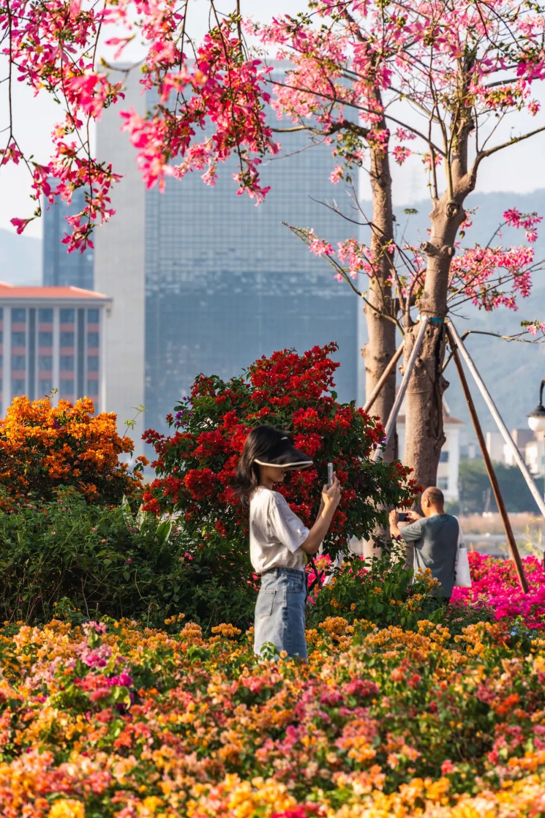 花海长廊让现代化生活与自然美景之间的距离不再遥远。花期期间,来到这里的有工作之余来放松心情的横琴居民、享受自然风景充实周末时光的澳门市民、来南方体验姹紫嫣红的冬天的各地旅客……