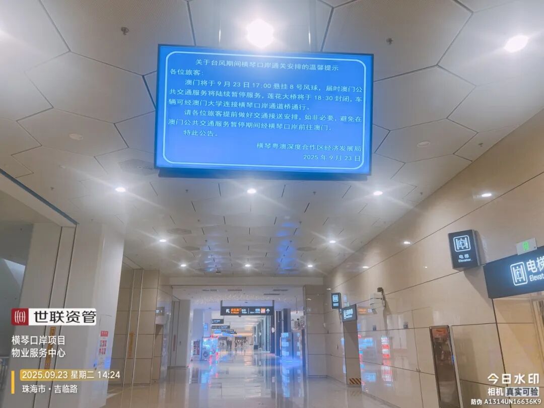 与合作区经济发展局紧密联动,利用横琴口岸的公共显示屏及时播放台风预警信息、通闭关信息,让旅客随时知悉通关情况,减少滞留旅客,并在口岸开辟专门滞留区,及时疏导滞留旅客,对需要特殊照顾的旅客由专人指引到母婴室安置。